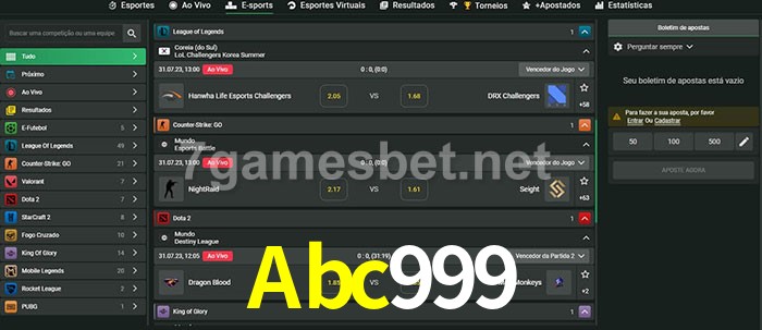 A aposta Abc999 oferece aos jogadores a experiência mais conveniente de apostas em eSports!